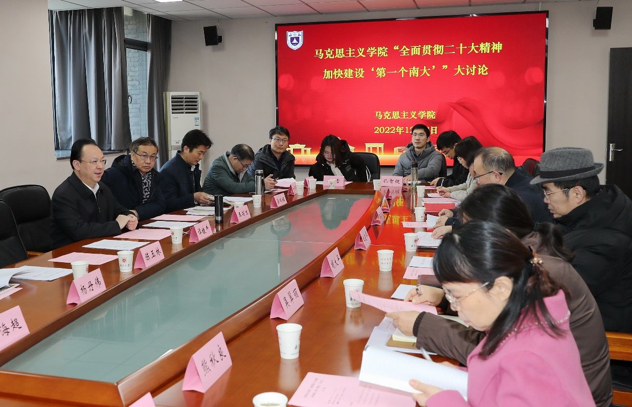 A workshop for teacher representatives of the School of Marxism was held on December 2 at Xianlin Campus, Nanjing University (NJU), to fully implement the guiding principles of the 20th National Congress of the CPC and accelerate the construction of “the First Nanjing University”. Tan Tieniu, an academician of the Chinese Academy of Sciences and secretary of the CPC Committee of NJU, participated and spoke with the representatives. Wang Jianhua, secretary of the CPC committee of the School of Marxism, presided over the workshop.