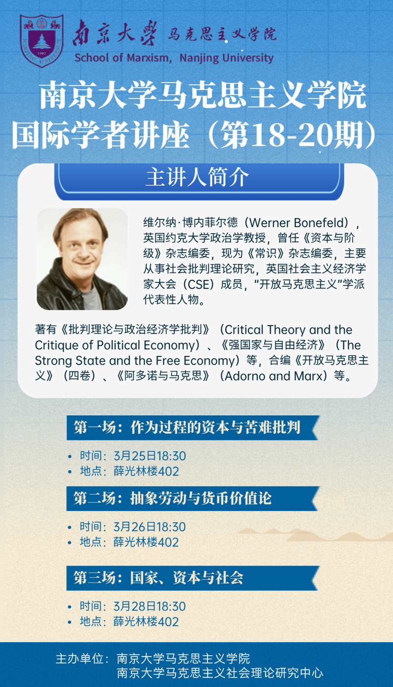 上一条:讲座预告 | 南京大学马克思主义学院国际学者讲座(第21期)