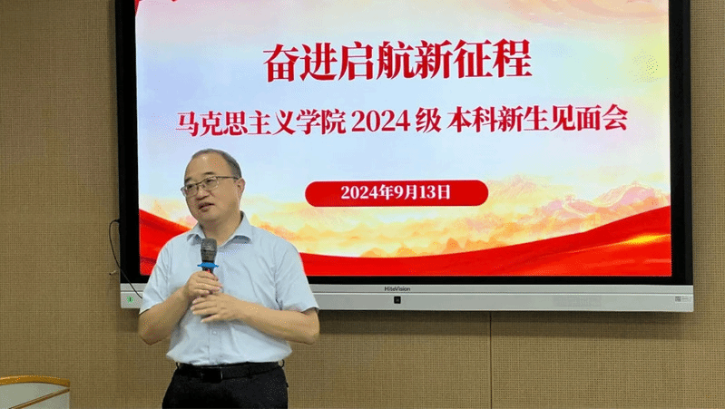 人才培养模式,帮助新生同学尽快适应大学的学习生活节奏,9月13日中午,南京大学马克思主义学院在仙林校区圣达楼100A教室成功举行“奋进启航新征程——2024级‘本科新生日’暨师生见面会”活动。院党委书记王建华老师、副院长吴翠丽老师,2024级本科新生导师聂平平老师、金文老师、尤歆惟老师,院团委书记刘晶月老师、本科生辅导员王泽森出席活动。见面会由院党委副书记时昱老师主持。