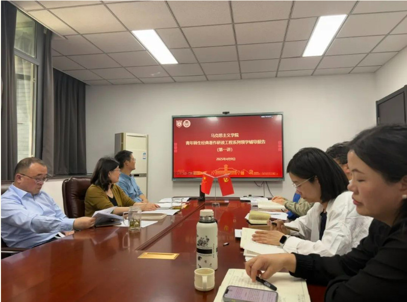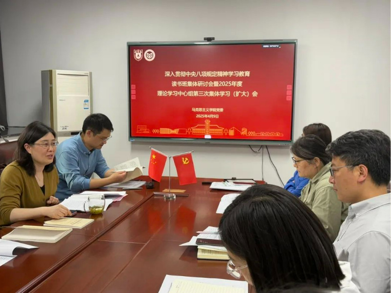 4月9日,马克思主义学院召开深入贯彻中央八项规定精神学习教育读书班集体研讨暨2025年度党委理论学习中心组第三次集体学习(扩大)会。院党政班子成员、全体师生党支部书记参加会议。马克思主义学院党委书记时昱传达中央有关文件精神并作领学发言。