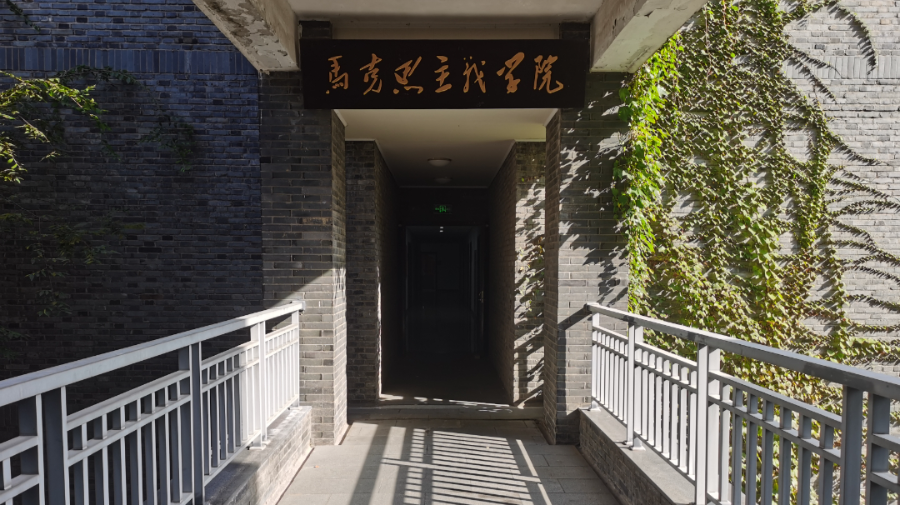 马院与政府管理学院同用圣达楼,从正门进楼,左转上楼梯至二楼,即可看到马克思主义学院;二楼反方向是政管的图书室与自习室。