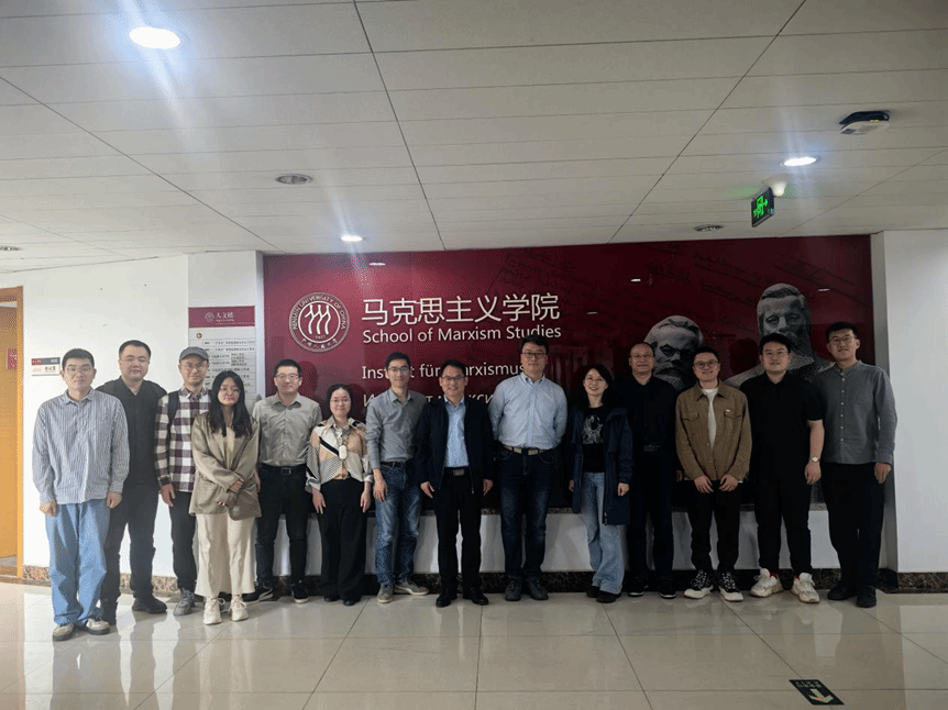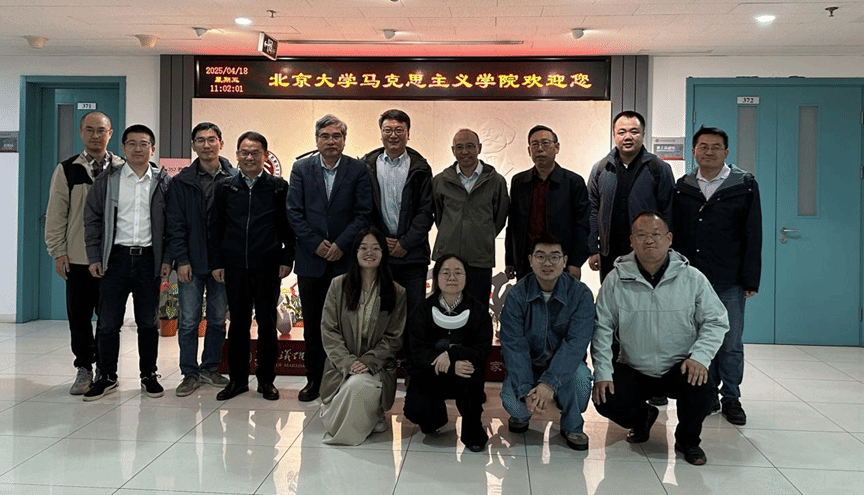 接着,教研室一行赴北京大学马克思主义学院进行学习调研交流。北京大学马克思主义学院院长仰海峰、书记孙来斌、副院长陈培永、马克思主义基本原理研究所所长魏波、教师代表夏少光、《当代中国马克思主义研究》编辑部陈建琪出席会议。仰海峰院长首先代表北大马院对我教研室来访表示热烈欢迎,并详细介绍了北大马院的历史沿革、教学成果和人才培养等基本情况。随后,魏波所长重点介绍了北大马院马原理教研室的发展现状,分享了北大思政课以课程模块为中心的特色教学模式,并对马克思主义基本原理课程的未来改革方向进行了展望。双方教师进一步围绕本科生培养、马原理课程教学设计和思政课堂的课程管理等相关议题展开了卓有成效的讨论。