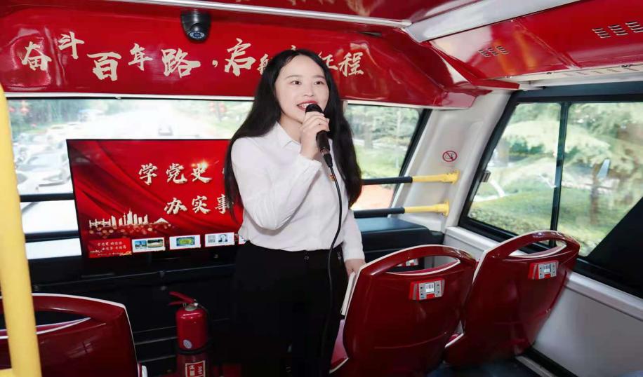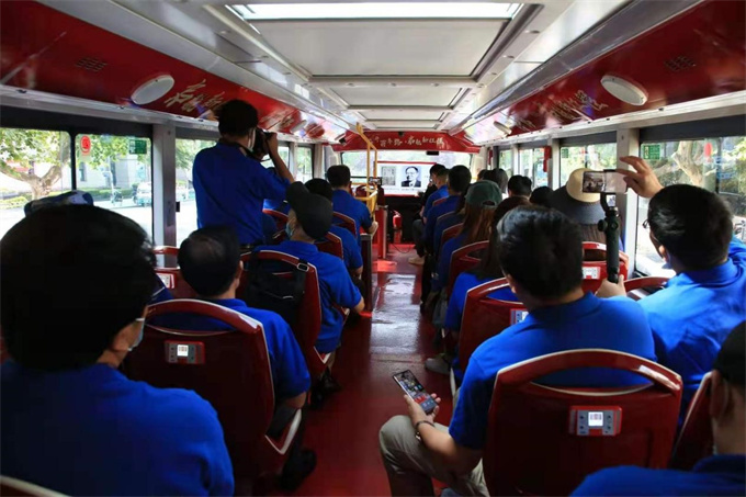 在“宁听红色巴士”课堂上,由谢宇嘉宁主讲的沉浸式党史教育课带领南京网络人士穿越百年党史。从马克思主义在南京的早期传播到新时代南京发展取得的重大成就,谢宇嘉宁以时间为脉络,将南京珍贵的红色资源串点成线,用一个个生动感人的党史故事,将网络人士带回那段艰苦的峥嵘岁月中,在回望历史中砥砺前行。在时长100分钟的旅途中,大家边参观景点边上党课,在移步换景中感受南京百年辉煌巨变。
