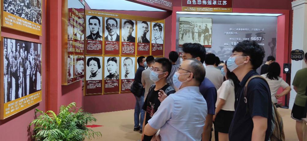 师生党员参观了“百年征程,初心永恒——中国共产党在江苏历史展”,上了一堂入眼入耳、入脑入心的沉浸式实景党课。