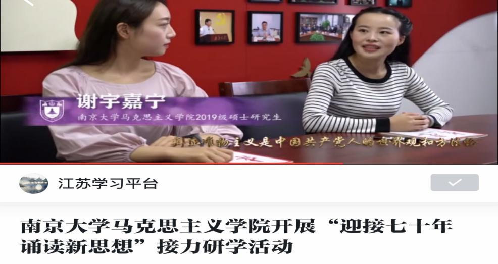 二是扎实推进理论宣传,支部积极承接“迎接七十年 诵读新思想”全国重点高校马克思主义学院接力研学活动,撰写脚本和录制视频,活动成果收录于学习强国平台;2021年,支部与中国人民大学、重庆大学等高校联合开展“学习党史知识 传承红色基因”主题党日活动,用云宣讲的形式弘扬雨花英烈精神,迎接建党百年庆典。支部成员牵头建设全国高校首家习近平新时代中国特色社会主义思想青年学习社,以新思想凝聚新青年,以新实践激发新作为,先后获南京大学青年“五四奖章”“十佳社团”等称号,活动成果受到了中宣部、教育部、江苏省委、团中央多位领导同志的肯定,被教育部、人民网、南京日报等多家单位、媒体关注报道。