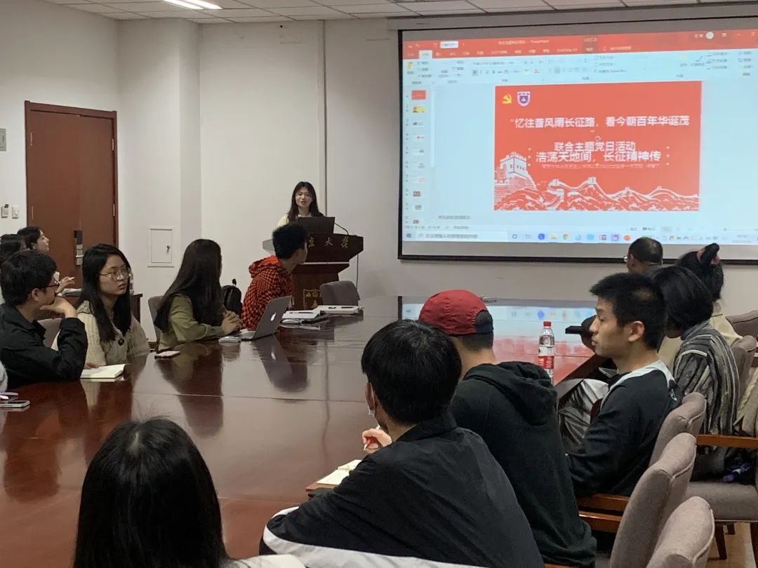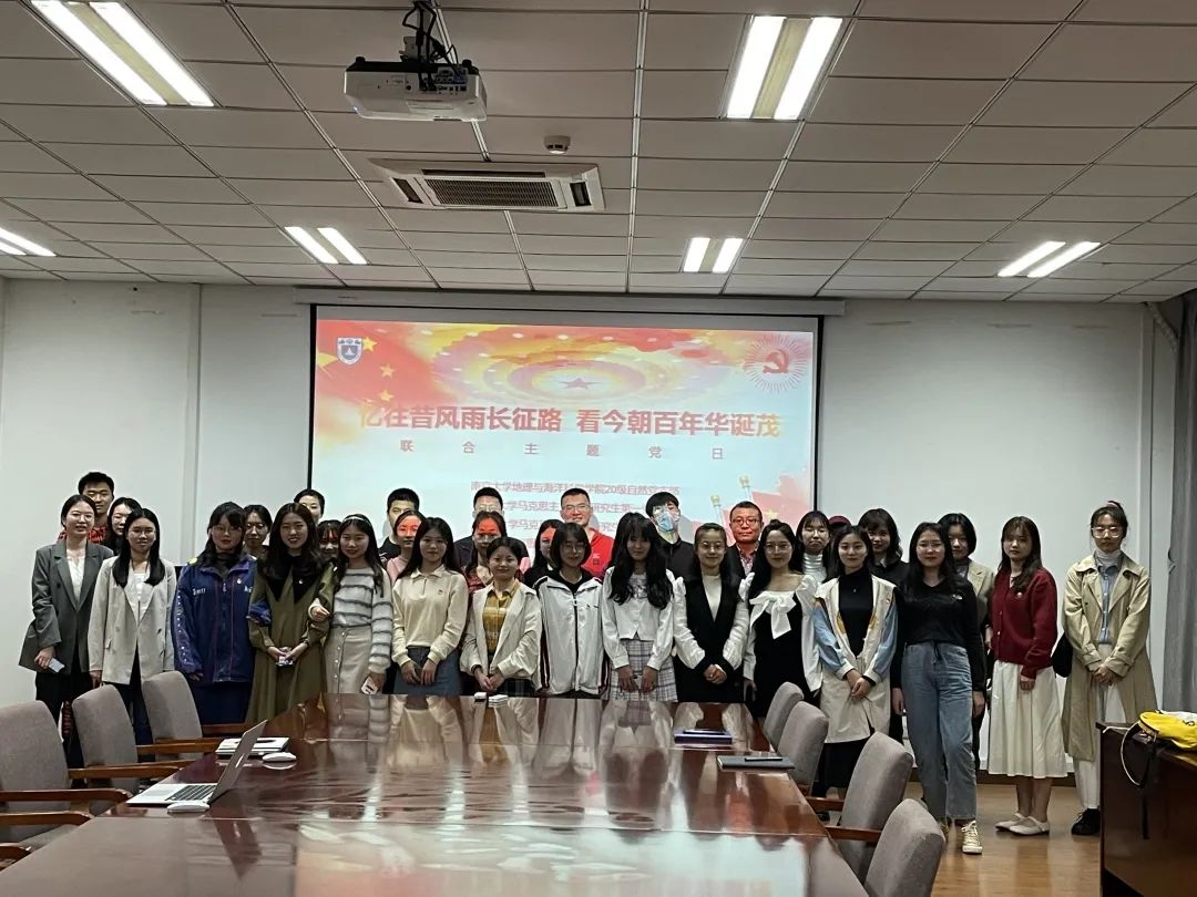 为坚定不忘初心、牢记使命的决心和信仰,从历史中获得启迪,以昂扬的姿态迎接中国共产党百年华诞,4月22日晚18:30,马克思主义学院研究生第一党支部、第二党支部、2020级第一党支部同地理与海洋科学学院20硕自然党支部于昆山楼会议室537开展“忆往昔风雨长征路,看今朝百年华诞茂”联合主题党日活动。本次主题党日活动由地理与海洋科学学院20硕自然党支部书记黄雪滢同志主持,四个支部的党员同志参与本次活动。