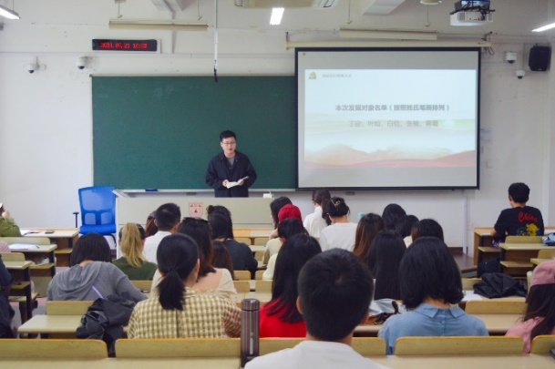 为庆祝中国共产党百年华诞,坚定党员同志为人民服务的宗旨和增强历史使命感,2021年5月21日上午10点,马克思主义学院研究生第一、二党支部在教学楼321教室召开预备党员接收大会。会议由第一党支部书记崔兴红同志主持,马克思主义学院研究生第一、二党支部全体党员及发展对象参加。