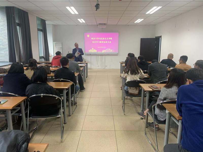 在圣达楼109召开南京大学马克思主义学院党史学习教育动员大会。全体教职工和部分学生党员参加会议,学院党委书记王建华做动员讲话。