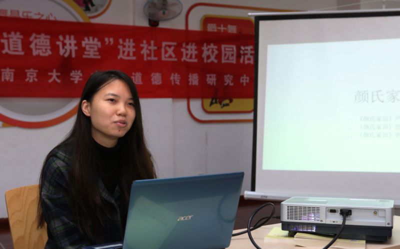 南京大学马克思主义学院肖芬芳博士从学术的视角、以通俗的语言为在场居民讲授了《颜氏家训》中的家庭教育观。《颜氏家训》作为中国古代家庭教育理论宝库中的一份珍贵遗产,对当今家庭美德的建构有重要的借鉴意义。肖芬芳博士通过一个个有趣的故事,带领在场的居民学习了《颜氏家训》的部分内容,并紧密结合生活实践为大家诠释了古代的家训如何在现代社会灵活运用。居民们听后纷纷表示,肖博士的讲解生动具体、通俗易懂,大家从中收获良多,并期待着今后能有更多类似的讲座走近他们身边。