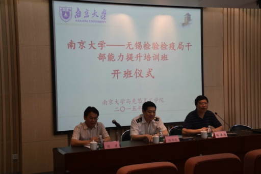 6月1日,南京大学马克思主义学院与无锡检验检疫局联合举办的干部能力提升培训班开班仪式在圣达楼101报告厅举行。南京大学马克思主义学院常务副院长孙亚忠,无锡检验检疫局党组成员陶伟东及参加培训的干部学员参加了开班仪式。仪式由南京大学马克思主义学院副教授、院长助理陈建主持。