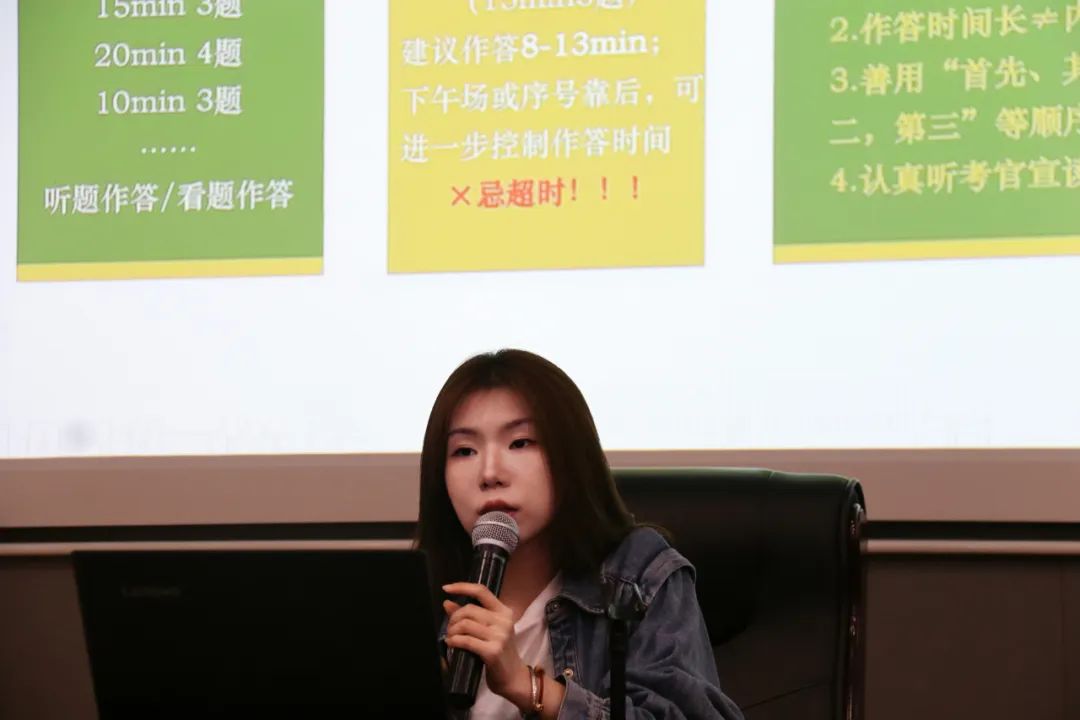 本环节中,现场同学分别从两位学姐准备的六道结构化面试题目中选择了人际关系题、综合分析题与情景模拟题进行作答。王良子学姐和苗润雨学姐对实战同学的回答思路都给予了肯定,同时给出一些改进意见,如在讲述故事时可凝练美化语言,回扣本人观点,让故事不只是故事。最后苗润雨学姐对其中一道情景模拟题讲解回答思路,并进行示范作答,生动诠释了此类题型审题与自我定位的重要性,以及如何在情境题中构建框架。