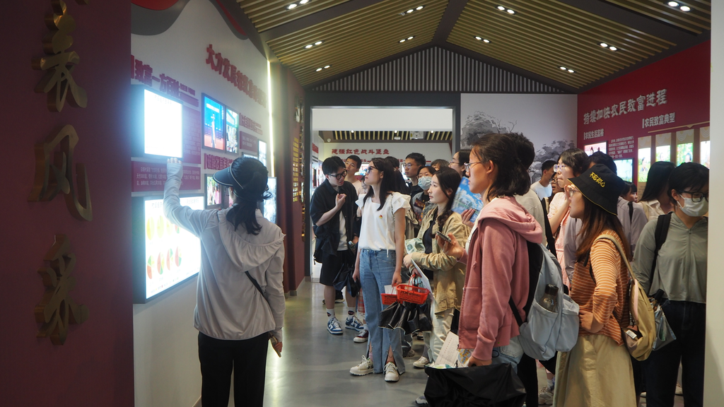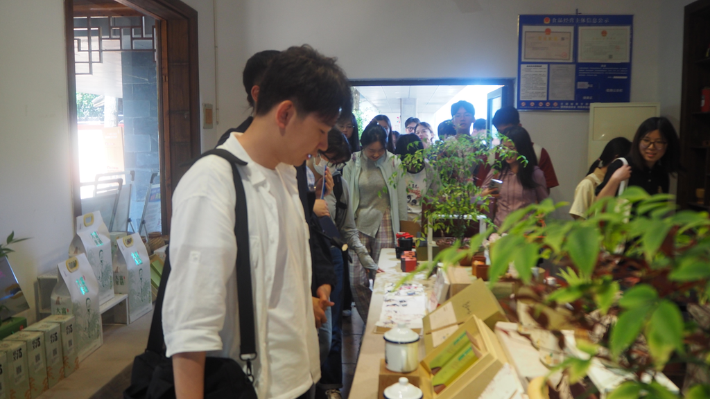 此外,同学们还走进了白塔味道直播间。这里定期开展直播活动,宣传当地的一些特产,如富硒大米、笋干、糯米酒等等。全国人大代表、白塔村党总支书记欧阳华身先士卒开展直播带货,创下了相当不错的销售业绩。