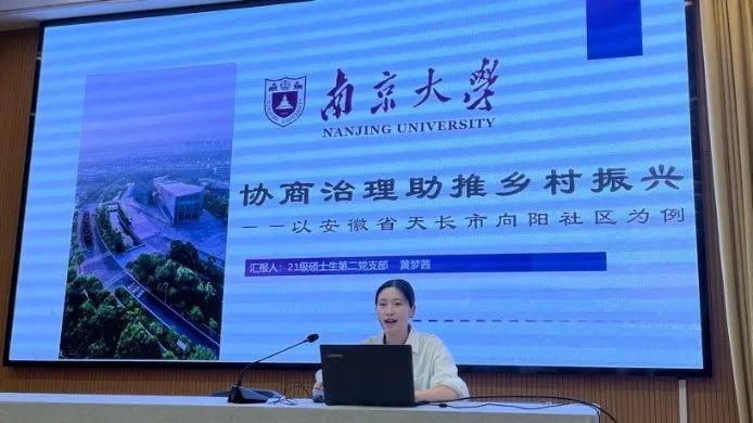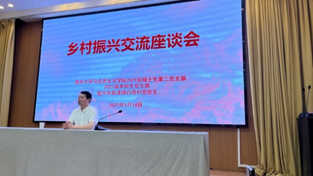 座谈会开始,马克思主义学院2021级本科生团支部成员蔡恺翔同学以《从白塔样板看乡村振兴》为题展开分享交流。他从白塔村样本引入,从产业兴旺、生态宜居、乡风文明、治理有效和生活富裕五个方面展开对白塔村乡村振兴的路径进行了深入的探究。接着,马克思主义学院2021级硕士生第二党支部成员黄梦茜同学进行《协商治理助推乡村振兴——以安徽省天长市郑集镇向阳社区为例》的主题宣讲。黄梦茜从我国基层治理的一个社区为案例,通过对该社区协商治理的政策导向、治理模式、取得成效的分析,以小见大地挖掘在我国乡村振兴背景下基层民主制度建设的重要作用。