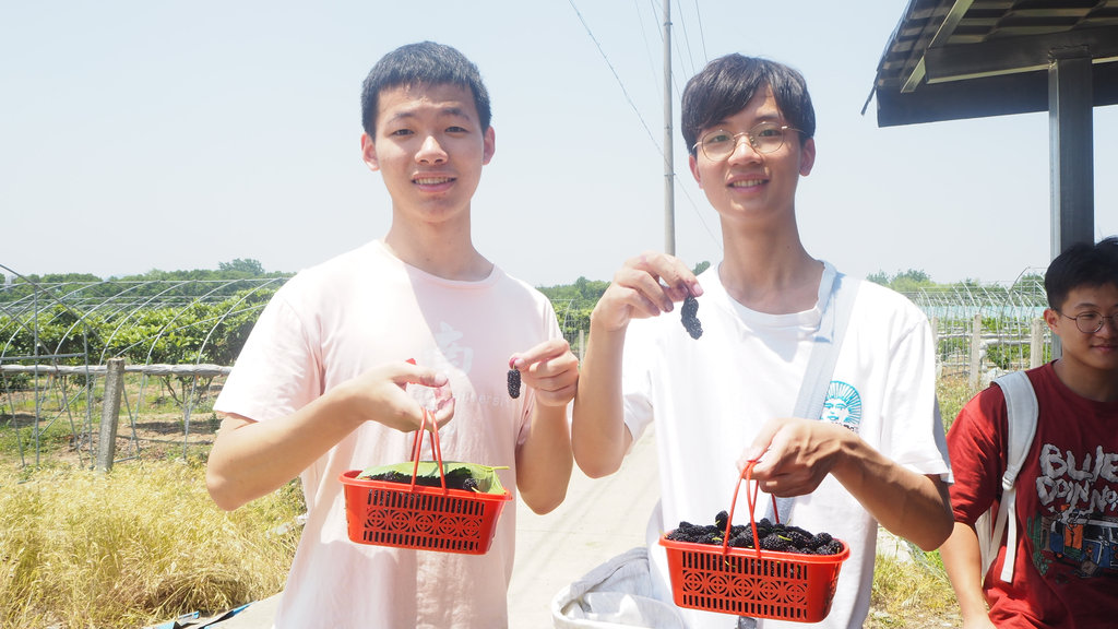 在农业产业基地,南天竹、茭白、小麦等农作物长势喜人,引得同学们驻足观赏。王知逊为同学们细心讲解了各类农作物的生长习性与经济价值,令他颇为自豪的是白塔村果园产业所取得的不斐成绩——五一期间上市的小樱桃火爆一时,正当季的是同学们即将前往采摘的桑葚,之后到7、8月份,水蜜桃、黄桃和魏可红提也将上市,这些都曾获江苏省优质水果大赛金奖和银奖。