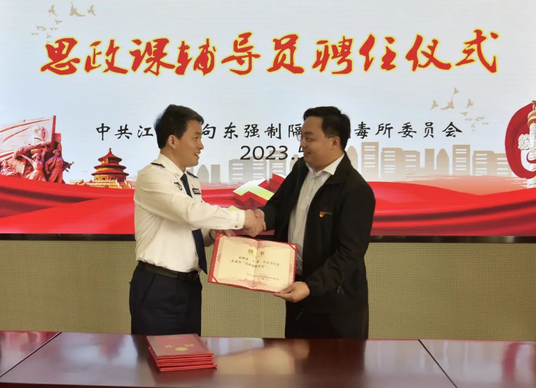 戒毒所党委书记、所长殷鹤向支部党员、积极分子颁发了“思政课辅导员”聘书。