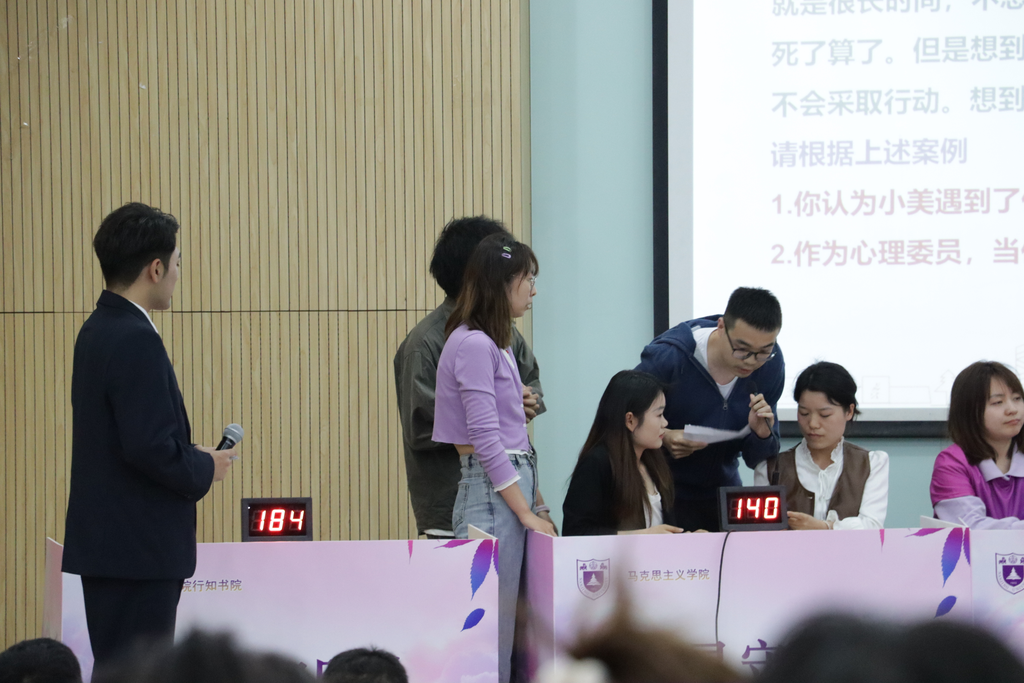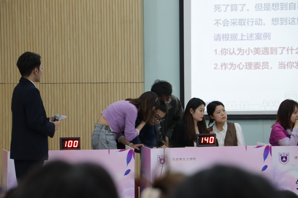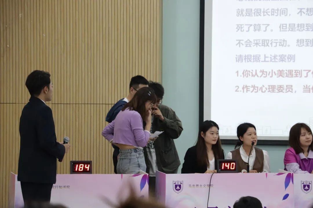 “心灵守卫”队不负所望,成功晋级决赛。决赛分为必答题、抢答题、案例分析三个环节,在时昱副书记和刘晶月老师的悉心指导与陪伴下,“心灵守卫”队在前两个环节拔得头筹,一马当先,并在案例分析环节展示了肉视频
