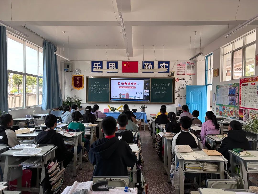 第一环节,马克思主义学院中国近现代史基本问题研究专业2022级硕士研究生顾雪雨和郭建琪同学为妥甸中学的同学们带来了以《民法典进校园》为题的精彩课程。