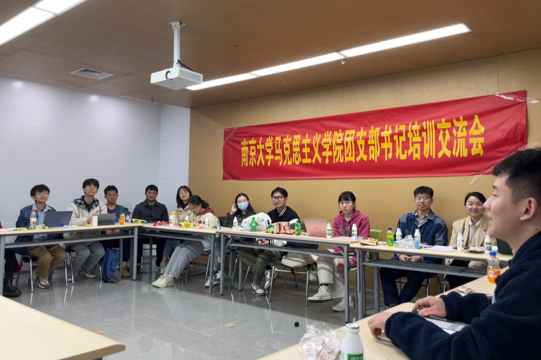 团委于2023年3月30日晚在敬文学生活动中心召开2023年南京大学马克思主义学院团支书培训交流会,会议由院团委副书记(学生)王世亨主持,团委书记刘晶月老师出席会议,本、硕、博各年级团支部委员共同参加。