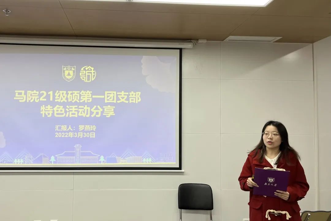 会议第二项议程为团支部特色活动经验分享。2021级硕士生第一团支部副书记罗燕玲同学从“以讲带做”理论学习活动、“以践促学”社会实践活动、“以景激情”红色教育活动三个方面介绍了团支部特色活动概况,指出团日活动要坚持学术性与实践性、丰富性与多元性、深度性与体验感三者的有机统一。2021级硕士生第二团支部书记王云鹏同学从筹办历程、背景和目的、活动形式、突出特点、问题和反思五个板块详细介绍了“寻访学习线路,争做强国先锋”主题特色团日活动。他表示,未来在开展活动时要把握节点、紧扣热点、突出重点,立足思想引领,聚焦青年需求。