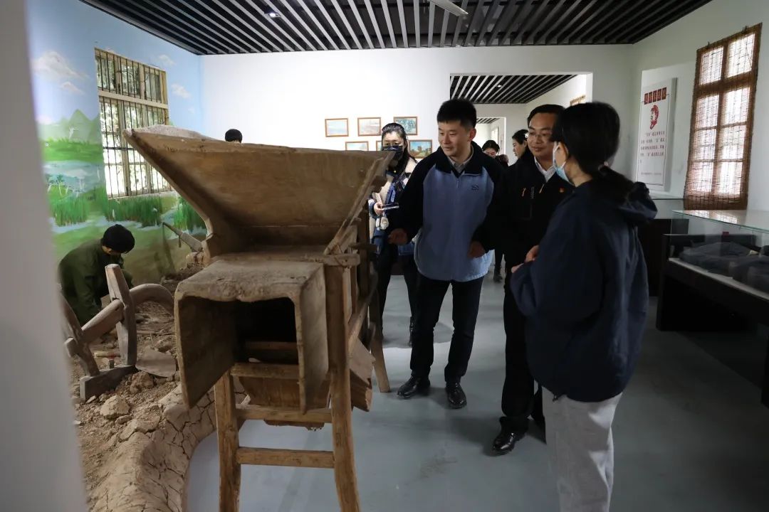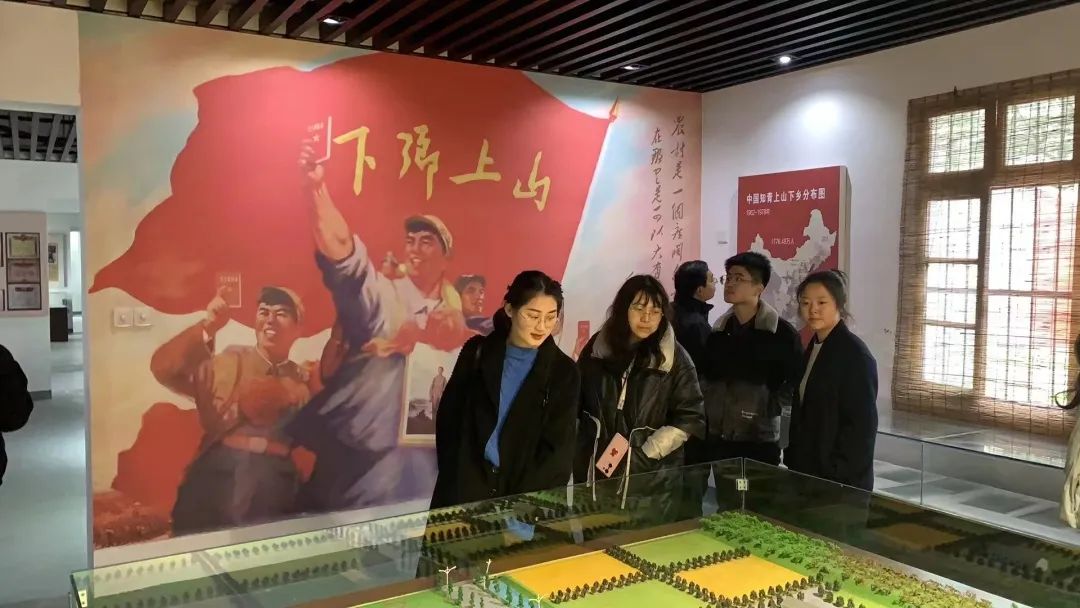 调研团赴长江社区知青家园参观五七农场学校旧址。1968年,来自南京、六合、扬州的知识青年汇聚于此,将一片荒摊改造成千亩良田,把一条乡道种成了万米水杉大道。聆听着讲解员的讲述,同学们在一个个老物件、一张张老照片前不时驻足凝视,感悟“知识青年上山下乡”的峥嵘岁月。
