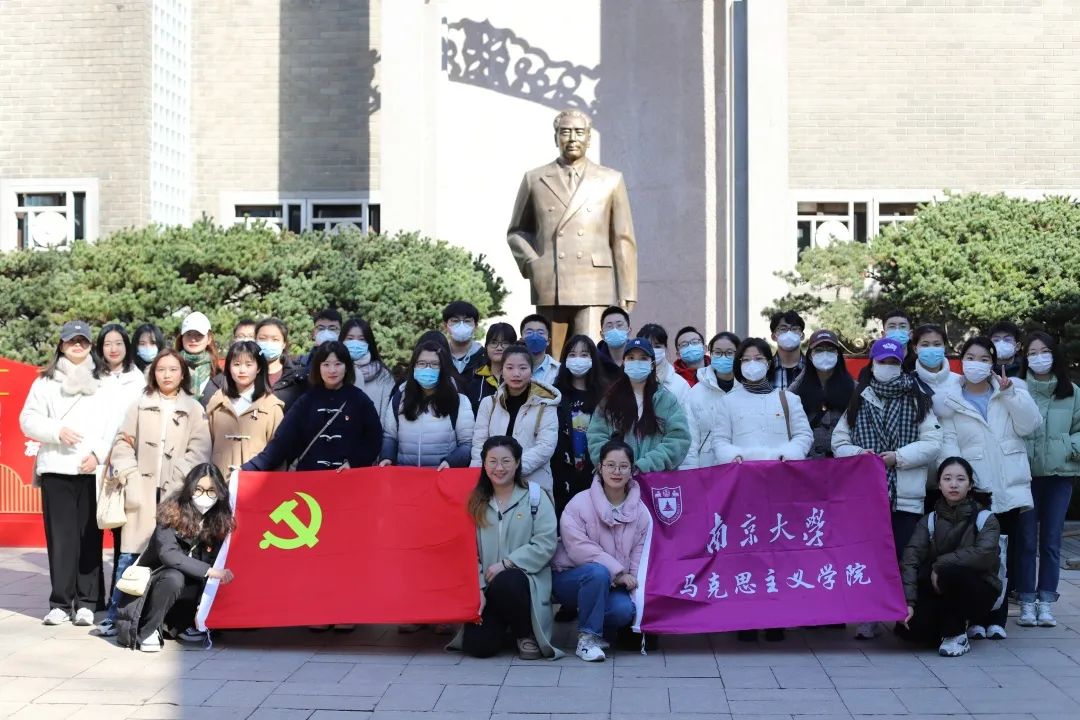 为深入学习贯彻党的二十大精神,铭记党的光辉历程和丰功伟绩,重温初心使命,深刻理解党百年奋斗的历史意义,将“不忘初心,牢记使命,永远奋斗”的精神铭刻在新时代青年学生心中,赓续红色基因,汲取奋进力量,2023年2月26日,南京大学马克思主义学院2022级硕士生第一党支部、团支部共同举办本次梅园新村纪念馆“瞻仰伟人风范,赓续红色基因”党团共建活动。