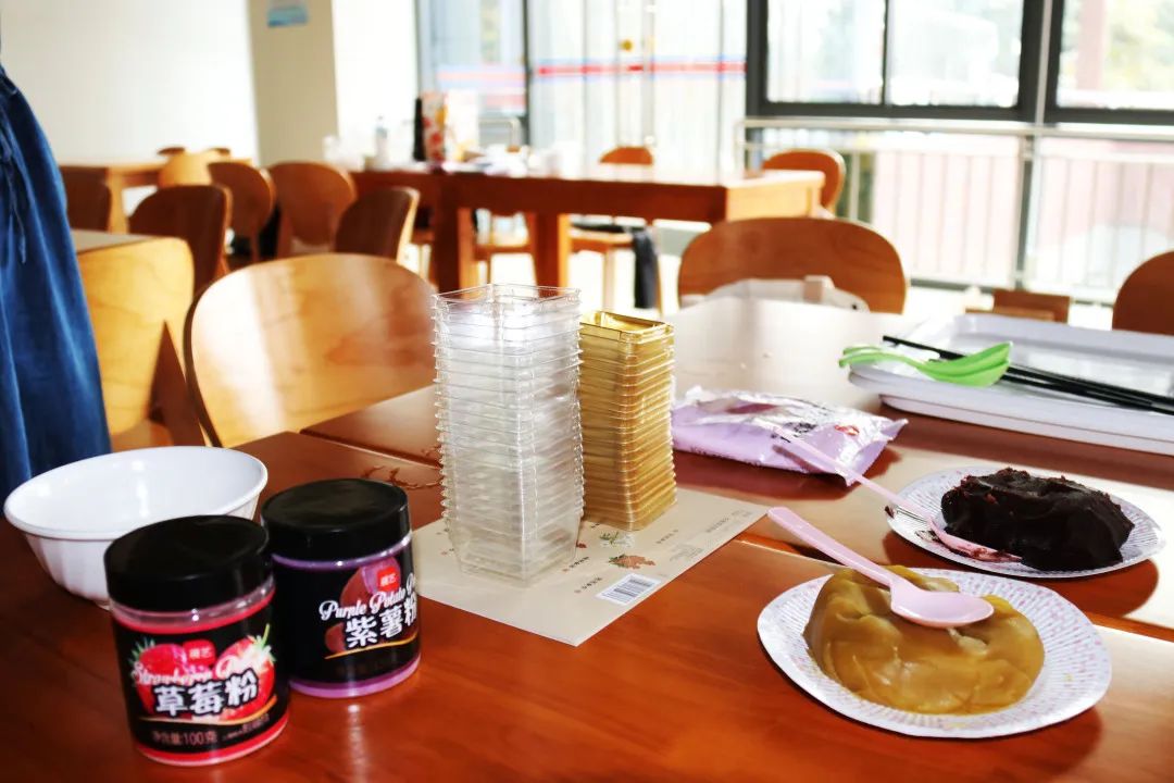 研会同学提前到场布置,将模具、预拌粉、馅料等工具提前分组摆放好,静待参与的同学前来。此次活动,研会精心准备了满满的物料大礼包,不仅有红豆沙、白莲蓉、板栗、奶黄等口味丰富的馅料,还有紫薯粉、草莓粉、南瓜粉来给冰皮月饼呈现不一样的色彩。此外,活动筹备组还贴心准备了冰皮月饼的制作攻略和视频教程,提前发在微信群里供大家参考。