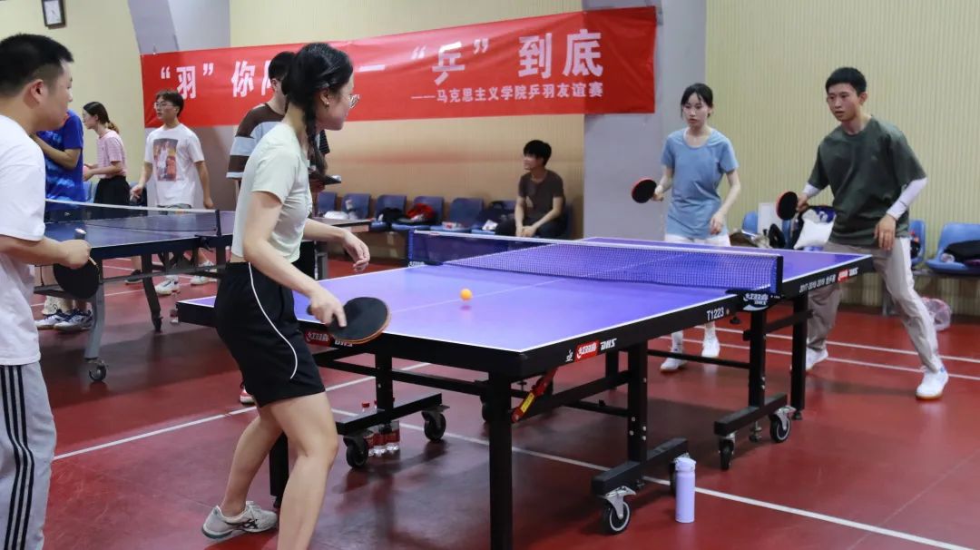 师生在切磋互鉴中建立联系、增进友谊。乒乓球场常有马院人顽强拼搏的身影,羽毛球场时现马院人轻羽飞扬的风采。胜负有时,热爱不减。相信通过这场比赛,大家能够结交更多的乒羽球友相约进步,期待下一个赛季仍然有你继续绽放青春光彩,续写拼搏华章!