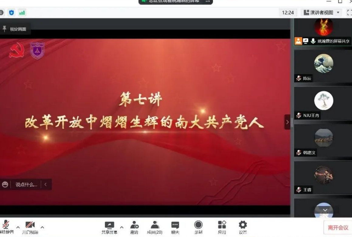 紧接着,支部全体党员共同观看了微党课视频《改革开放中熠熠生辉的南大共产党人》。在中华民族伟大复兴的征程上,一代又一代科学家心系祖国和人民,不畏艰难,无私奉献,为科学技术进步、人民生活改善、中华民族发展作出了重大贡献。作为中国百年学府的南京大学,在延绵不绝的时间长河里,也诞生了不少爱党爱国,造福人民的科学家。通过短片,大家一起重温了改革开放期间,以吴良镛、胡福明、程开甲为代表的三位南大共产党人是如何秉持着南大“诚朴雄伟,励学敦行”的校训,前赴后继,投身于祖国的现代化建设事业中的光辉事迹。