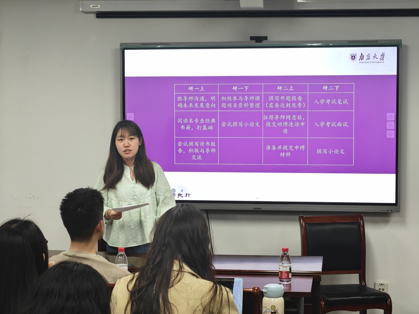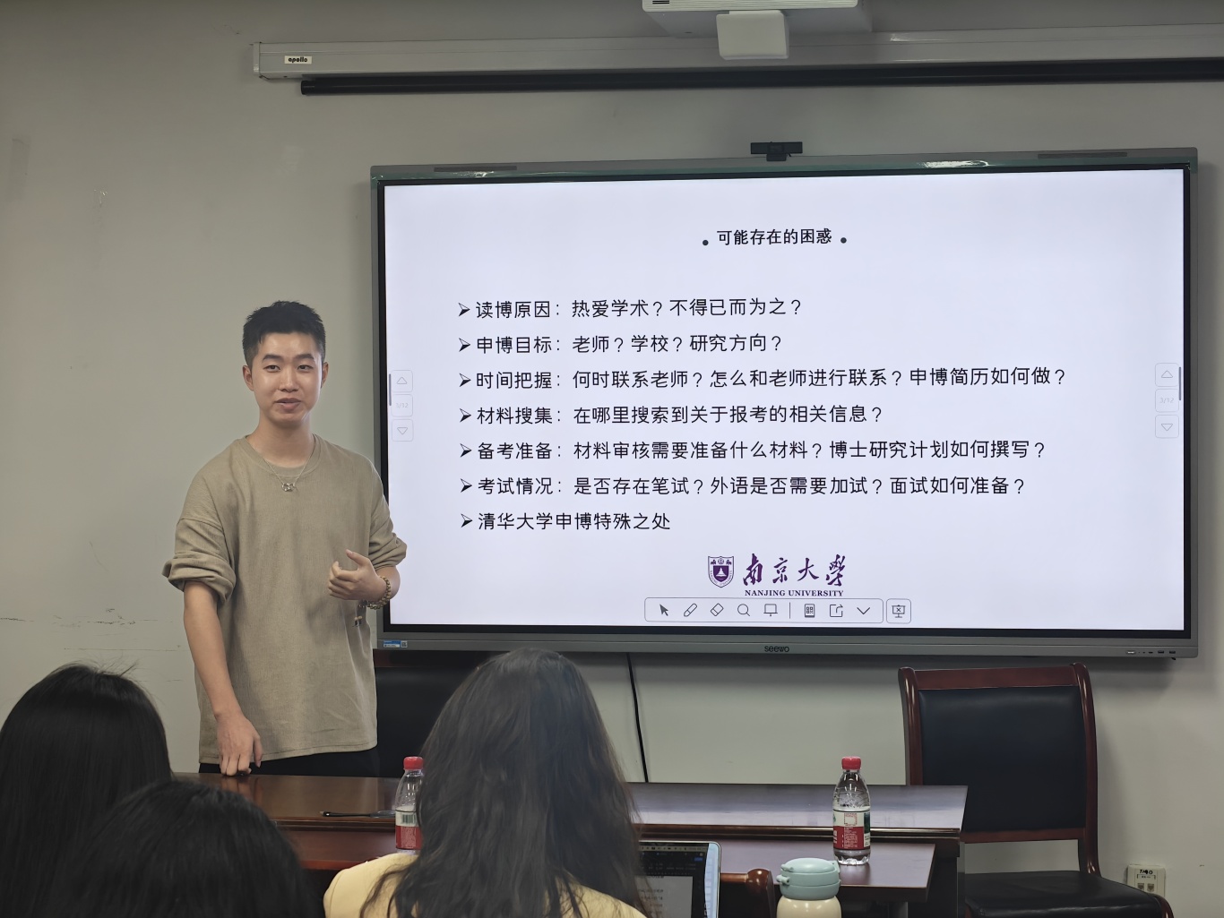 为深化研究生学涯规划能力,助力学子精准锚定申博路径,5月15日晚,肉视频 “学途共勉,博志领航”申博经验分享会在仙林校区圣达楼211会议室成功举办。本次分享会作为研究生会“学海泛舟”品牌活动之一,有幸邀请到张鹤怡、陈永康、陈馨、邓茹菲、张璐五位优秀申博学子作经验分享。分享会由研究生会学术部成员冯静怡主持。