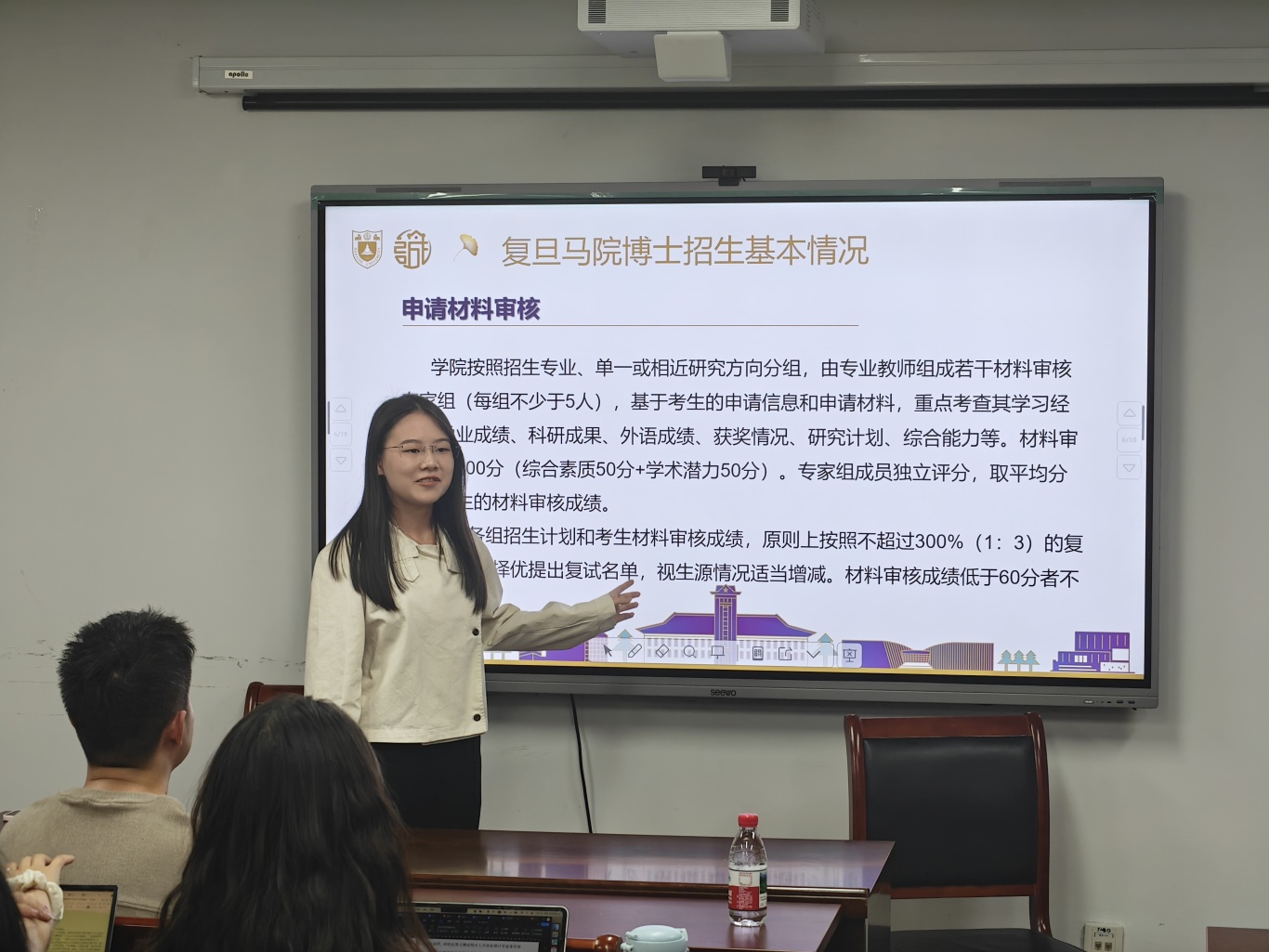 本次分享会从材料准备到备考攻坚的全流程展开深度解析,呈现了一场兼具系统性、实操性与前瞻性的申博经验分享盛宴。心有所向,步履铿锵。愿马院学子以本次分享会为契机,扎实钻研文献、筑牢自身根基,感悟交流经验、掌握笔面技巧,在申博征程中明晰方向、稳步前行。