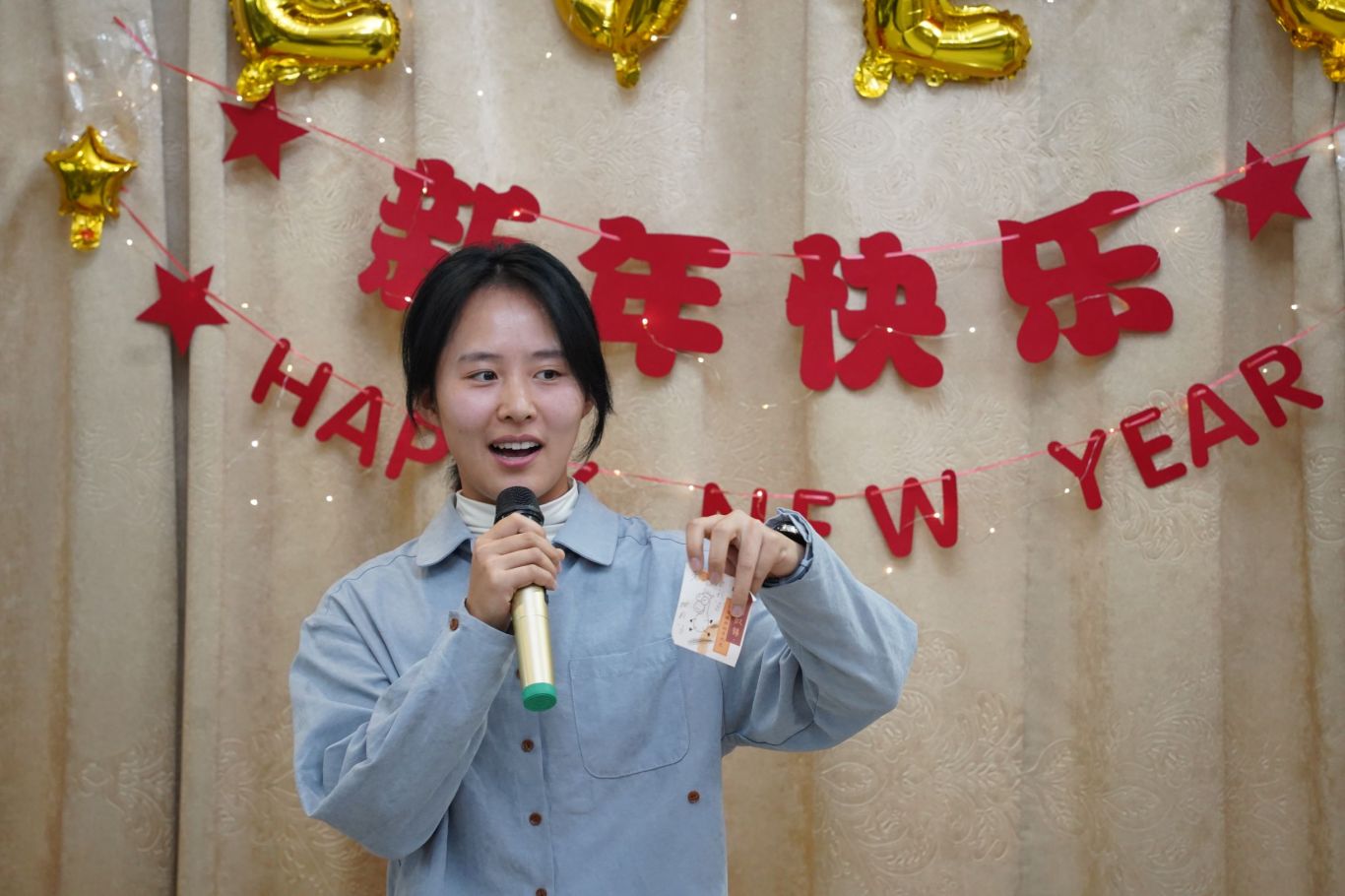 饺子下锅,蒸汽袅袅升起;心愿展开,祝福娓娓道来。在等待饺子煮熟的间隙,活动进入了温馨的“福语寄新岁”环节。主持人从贴满了美好祝福的心愿墙上选取便签,被选中的同学依次上台,分享自己的新年寄语。有的同学祝福学院蒸蒸日上、老师工作顺利;有的同学祝愿家人安康、岁月静好;有的同学期待学业精进、更进一步。主持人为每位分享的同学送上精美的新年小礼物,欢笑与感动间,冬日里的寒意尽数消融。