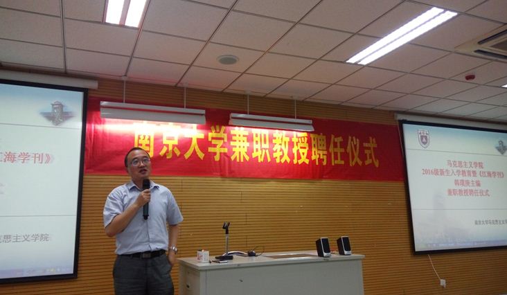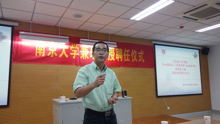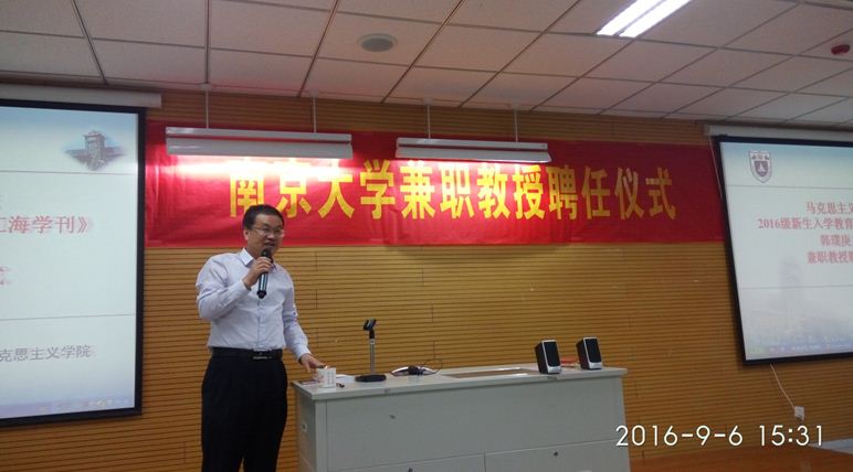 9月6日下午3:00,南京大学马克思主义学院2016级新生入学教育活动暨《江海学刊》韩璞庚主编兼职教授聘任仪式于仙林校区圣达楼102教室举行。南京大学党委常委、宣传部长、马克思主义学院院长王明生教授,马克思主义学院副院长胡大平教授、王建华教授出席本次活动并作了重要报告,参加本次活动的还有马院教师和全体研究生、博士生。仪式由学院副院长王建华教授主持。