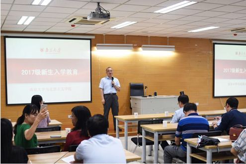 9月12日下午4点,南京大学马克思主义学院2017级硕博新生入学教育在仙林校区圣达楼102报告厅举行。南京大学党委常委、宣传部长、马克思主义学院党委书记王明生教授出席了本次新生教育活动并做了重要报告。本次活动由副院长王建华教授主持。参加本次新生教育活动的还有马院教师和全体研究生。首先,王书记代表南京大学马克思主义学院全体师生对2017级硕博新生的到来表示热烈的欢迎。