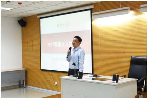 然后,王书记分别从院系发展、南大精神、人生目标等方面为2017级新生做了深入介绍,并为新生们提出了四点建议:第一,希望新生们能尽快地融入马院、融入南大,成为南大主人,践行南大精神;第二,希望同学们静心读书,学好“真经”,“真经”也就是指“经典”和“原著”,作为马院的学生,应该仔细研读马恩毛邓的经典著作,学习习近平总书记系列重要讲话精神,为进一步的理论研究打下坚实的基础;第三,不仅要读书,也要更多地参加学术活动和社会实践,从丰富多彩的实践中寻找新的知识增长点;第四,要以崇高的志向,情怀看待和规划自己的大学生活,通过3到7年的学习成为一个能为马克思主义研究作出贡献的人。讲话的最后,王书记再次对2017级硕博新生表达了祝福:希望同学们都能学有所得、学有所成;没有比人更高的山,没有比脚更远的路,衷心地祝愿同学们都能为自己的目标奋力前行,成为马院的骄傲!
