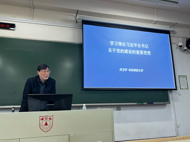 2025年2月26日上午8:30,南京大学中共党史党建研究院第十四期问道大讲堂在仙林校区如期而至。本次大讲堂的主讲嘉宾为华东师范大学齐卫平教授。本次大讲堂由南京大学马克思主义学院暨中共党史党建研究院聂平平教授担任主持人,聂平平老师向与会师生介绍了齐教授的学术履历与专业背景。齐教授是华东师范大学终身教授,博士生导师,新疆师范大学特聘教授,享受国务院特殊津贴专家,在中共党史党建、当代中国政治和政党制度研究等领域取得令人瞩目的研究成果,享有声誉。齐教授本次报告的题目为:“学习领会习近平总书记关于党的建设的重要思想”。