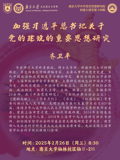 问道大讲堂预告 | 齐卫平:加强习近平总书记关于党的建设的重要思想研究