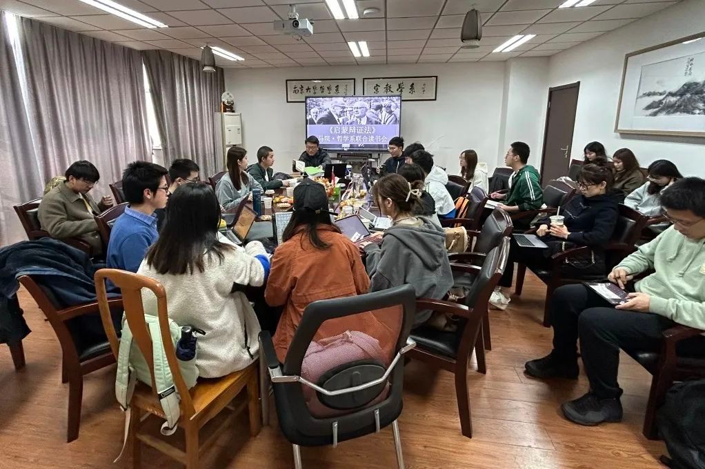 On the afternoon of March 26, the Graduate Student Associations of the School of Marxism and the Department of Philosophy at Nanjing University jointly organized a book-club activity, with the theme “Returning to the Concept of Enlightenment” in Classroom 325 at the Department of Philosophy. The book discussed in this activity was Dialectic of Enlightenment, written by Max Horkheimer and Theodor W. Adorno of the Frankfurt School. Li Qiankun, associate professor of the School of Marxism was invited to lead the discussion, and nearly 20 graduate students from School of Marxism, Department of Philosophy, and other departments participated in the activity.